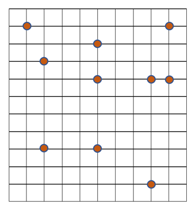 Задача 1. Чтобы поддерживать физическую форму, маги решили перестать использовать заклинание телепортации и ходить друг к другу в гости только пешком. Для осуществления данного начинания потребовалось соединить резиденции магов асфальтированными дорожками так, чтобы из каждой резиденции можно было попасть в любую другую, двигаясь по дорожкам (возможно посещая по пути другие жилища). Резиденции магов располагаются в узлах сетки, разбитой на квадраты со стороной 1 км (см. рис.). Какая получится минимальная длина (в км) всех проложенных дорожек, если каждая дорожка связывает две резиденции и их можно прокладывать либо целиком по горизонтали, либо целиком по вертикали?